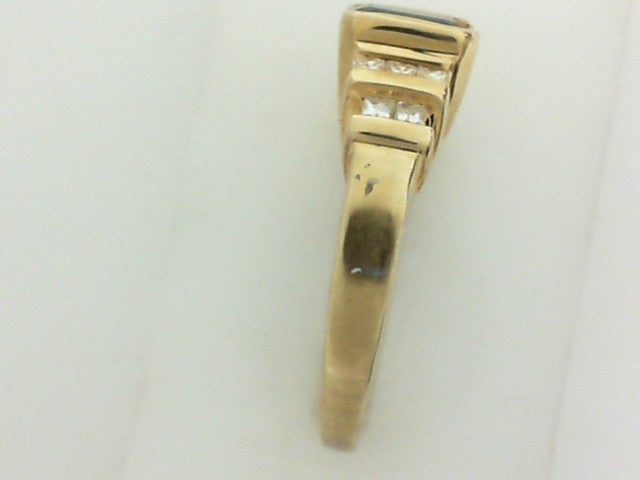 Gent's Yellow 14 Karat Contemporary Fashion Ring Size 7 With 10=0.40Tw Princess Diamonds And One 1.00Ct Emerald Sapphire