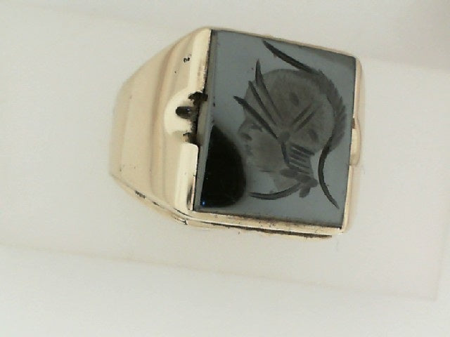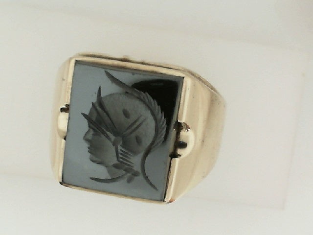 Gent's Yellow 14 Karat Intaglio Hemotite Fashion Ring