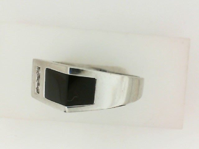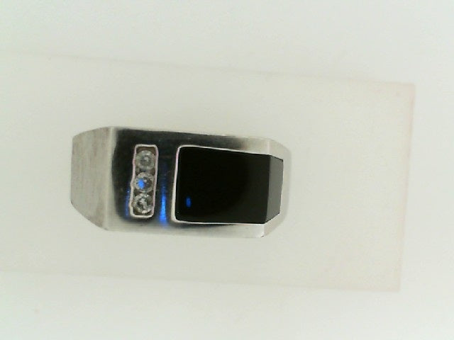 Gent's White 14 Karat Florentine Black Onyx Fashion Ring Size 10.5 With 3=0.06Tw Round Diamonds