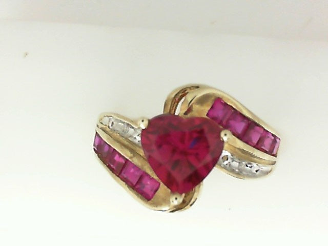 Lady's Yellow 10 Karat Fashion Ring Size 7 With Heart Created Ruby & All Created Rubys