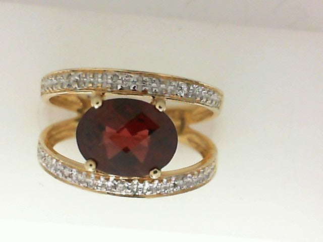 Lady's Two Tone 14 Karat Contemporary Fashion Ring Size 6.5 With One 2.50Ct Fantasy Cut Garnet And 6=0.03Tw Round Diamonds