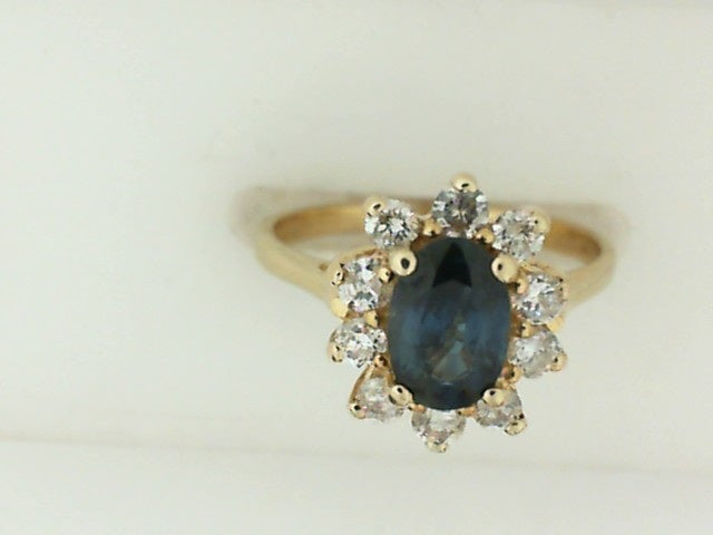 Lady's Yellow 14 Karat Ballerina Fashion Ring Size 6 With One 1.00Ct Oval Sapphire And 10=0.50Tw Round G/H Si1 Diamonds