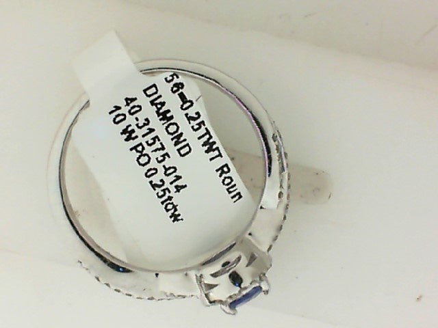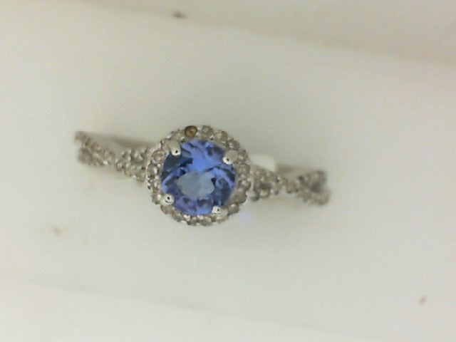 Lady's White 10 Karat Halo Ring With 56=0.25Tw Round J Si2 Diamonds And One 0.50Ct Round Tanzanite