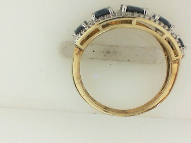 Lady's Two Tone 10 Karat 5 Stone Fashion Ring Size 7 With 5= Oval Sapphires And 0.15Tw Round Diamonds