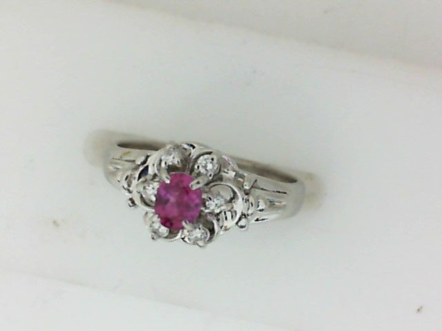 Lady's White Platinum Contemporary Fashion Ring Size 4.5 With One Round Ruby And Round Diamonds