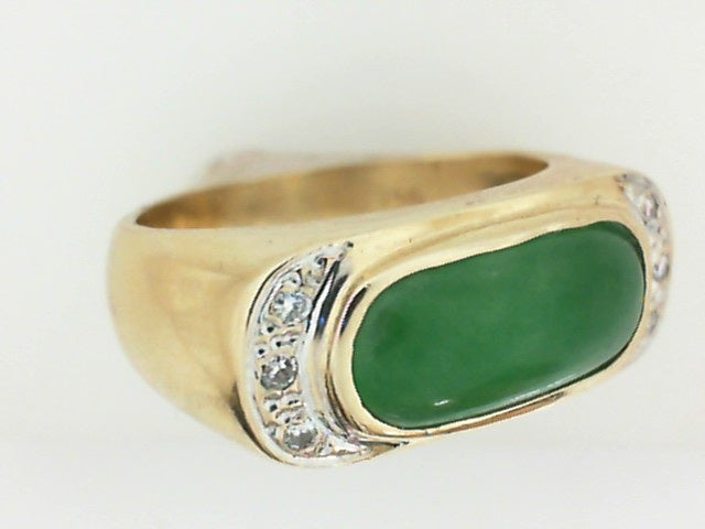Gent's Yellow 14 Karat Contemporary Fashion Ring Size 8.5 With One Cabochon Jade And 0.03Tw Round G Si1 Diamonds