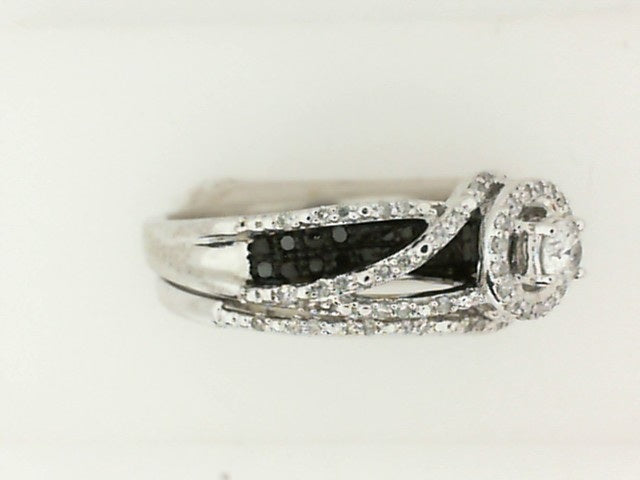 Lady's White 10 Karat Round Halo Engagement Ring Size 7 With 0.35Tw Round G/H Si3 Diamonds