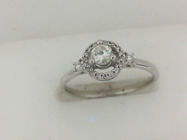 Lady's White 14 Karat Halo Engagement Ring Size 7 With One 0.15Ct Round G/H Si1 Diamond And 0.10Tw Round G/H Si2 Diamonds