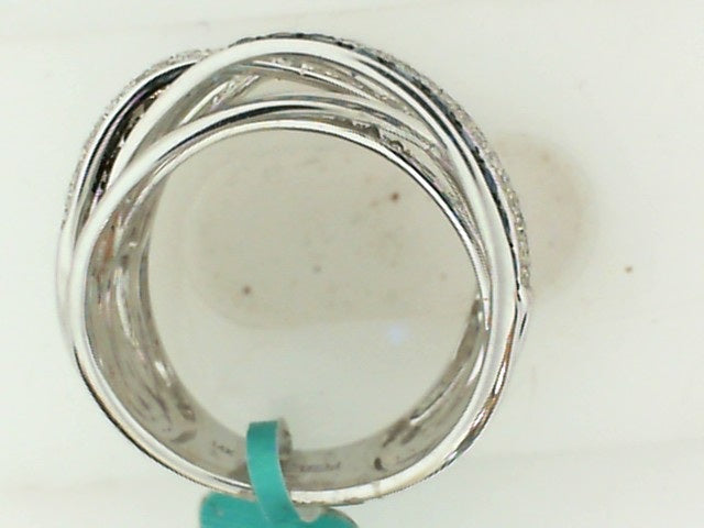 Lady's White 14 Karat Free Form Fashion Ring Size 7 With 0.43Tw Round G Si2 Diamonds And 0.75Tw Round Blue Sapphires