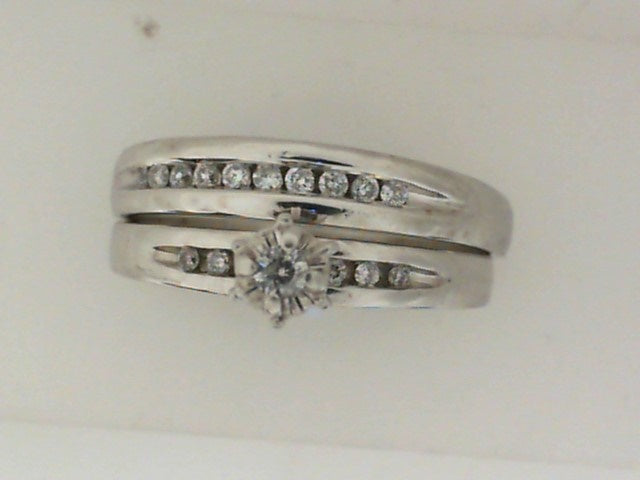 Lady's White 10 Karat Channel Set Diamond Wedding Set Size 8 With One 0.04Ct Round H/I I1 Diamond, 6=0.06Tw Round H/I I1 Diamonds And .10 Twt Other Stones